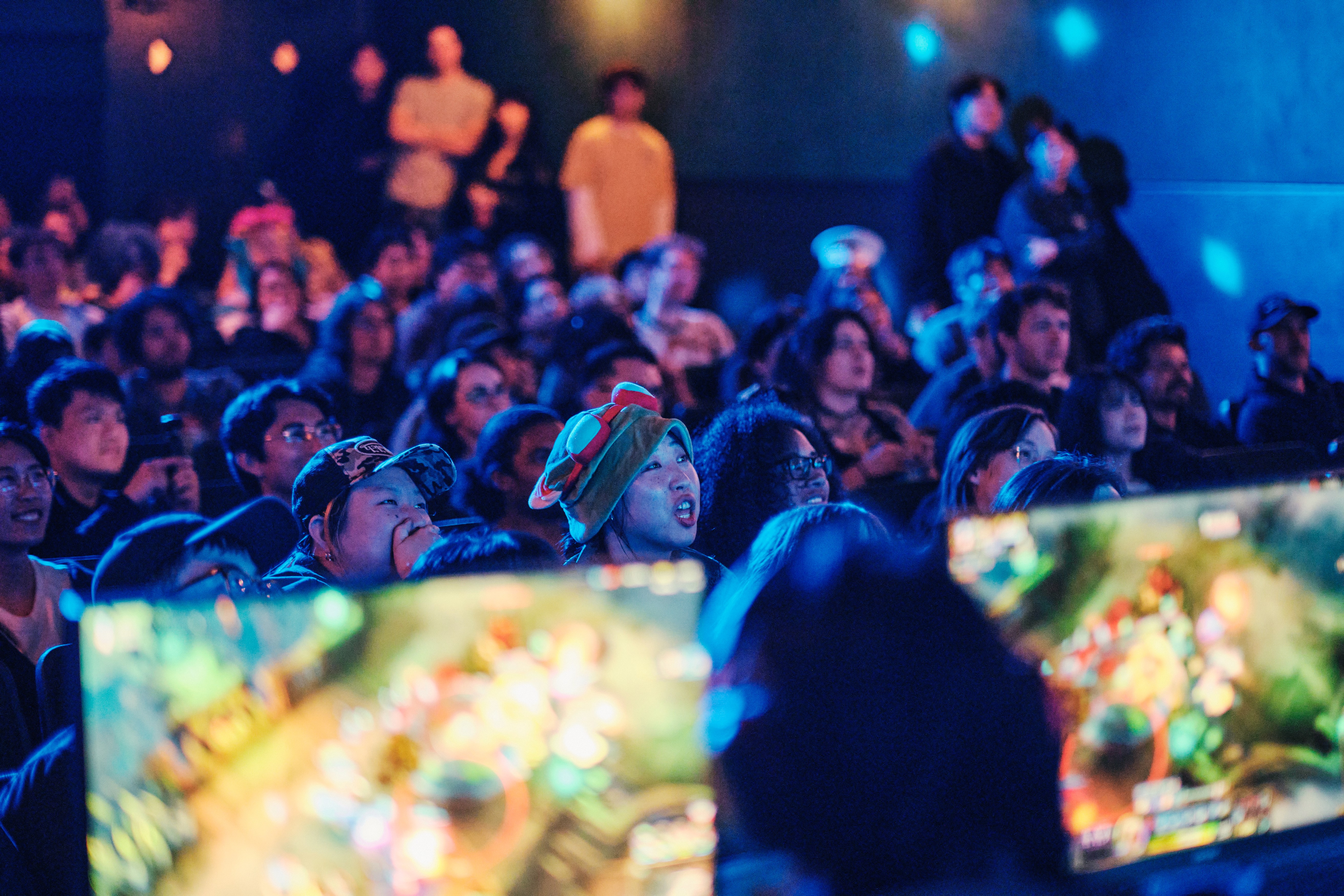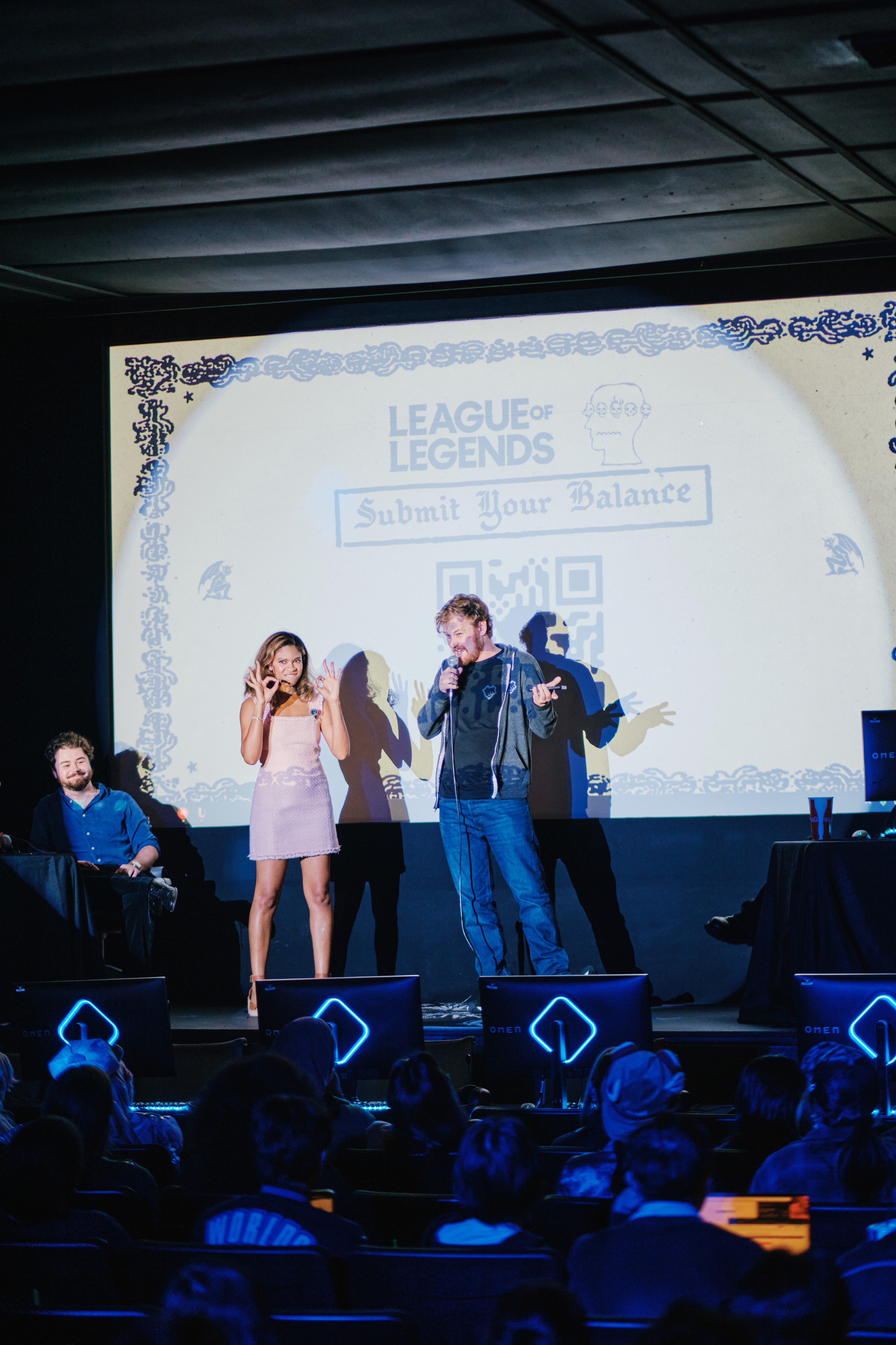 The format centered on back-to-back custom ARAM matches where creator captains drafted players from the live audience. The defining feature: attendees submitted champion balance changes via QR code between rounds, and League developers implemented them in real time. The result was controlled chaos, with 444 balance changes submitted and over 40 unique adjustments made live during the show. Over 50 audience members played on stage across the evening.